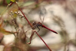 沖縄では、普通に見られるが、たくさんの個体を見ることはない。未成熟な個体は、水辺からはなれた草地などで見られる(写真上)。2018.6.17台風後の南大東島はタイリクショウジョウトンボだらけ、下の写真は、単独で産卵する♀。